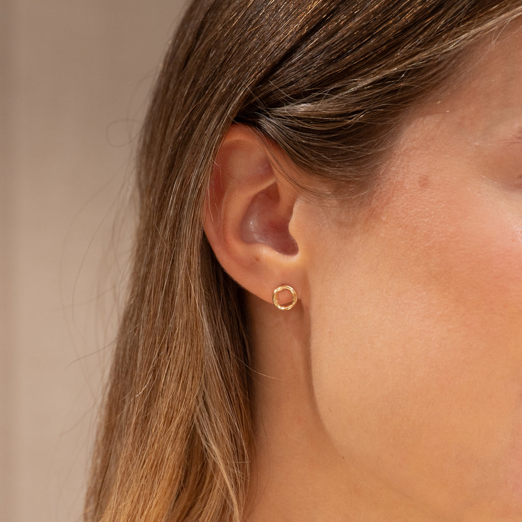 Øreringene er designet i en organisk, rund form med en rå midte, der giver et interessant og moderne udtryk. De kan bæres alene eller styles med andre smykker i øret, hvis du har flere huller.